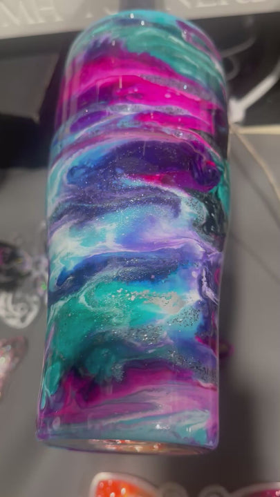 Immerse yourself in the mesmerizing hues of teals, blues pinks and intricate swirls that flow seamlessly across this tumbler. tumbler is a perfect blend of elegance and artistry for your drinkware collection.