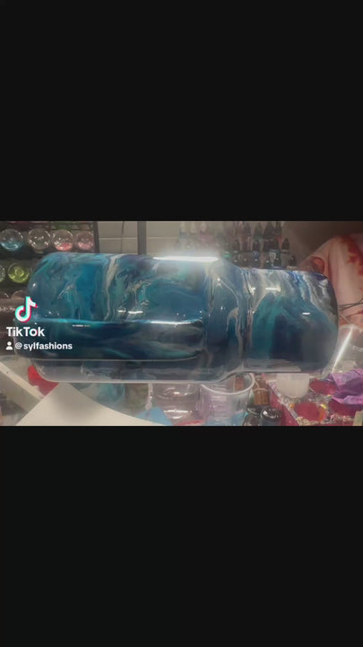 Immerse yourself in the mesmerizing hues of blues, silvers and lite blues and intricate swirls that flow seamlessly across this tumbler. Accented with a subtle glow, the tumbler is a perfect blend of elegance and artistry for your drinkware collection.